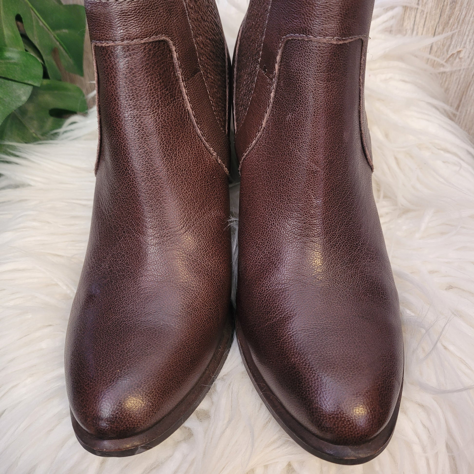 Upgrade your shoe game with Ugg's Cobie Ankle Boots. Made of premium leather in a rich chocolate brown color. These boots feature gathered stretchy elastic sides and a large stacked heel for a comfortable snug and stable fit. These boots are in excellent pre-loved condition, so get ready to step up your fashion game with these must-have boots.